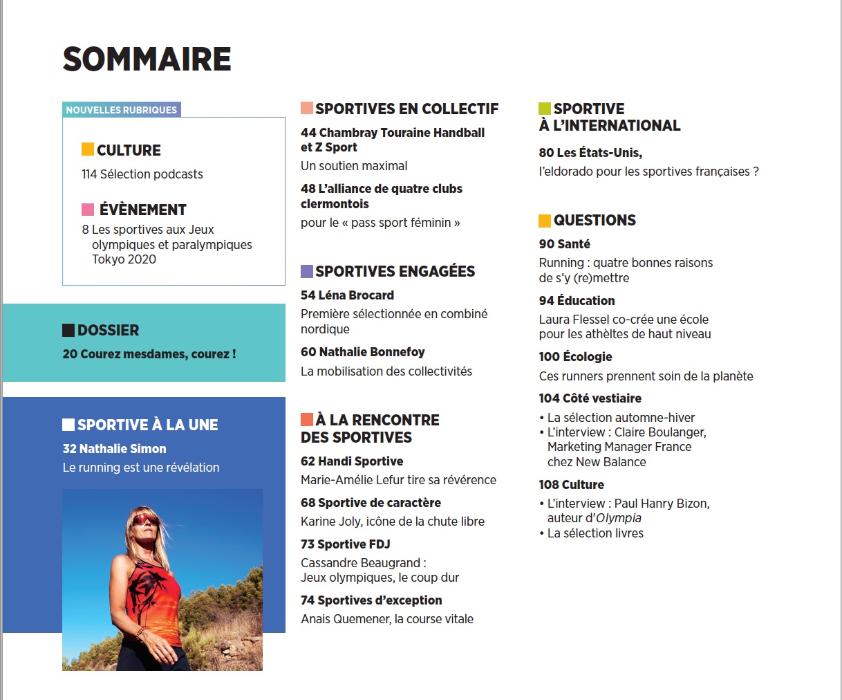 Un numéro dans lequel nous revenons également sur des sujets qui ont marqué les femmes dans le sport ces derniers mois, et sur des évènements futurs qui marqueront une fois de plus l’histoire du sport et de certaines athlètes : les Jeux olympiques de Tokyo et de Paris 2024.
